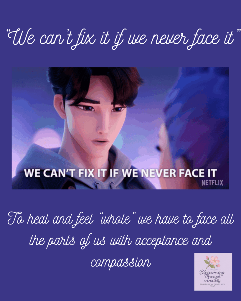 In order to heal and feel “whole” we have to face all the parts of us with acceptance and compassion. Therapy can help us recognise that maybe that part of us that we don’t like is acting that way because that’s how it learned to survive, and by accepting that we can work on introducing new ways of coping.