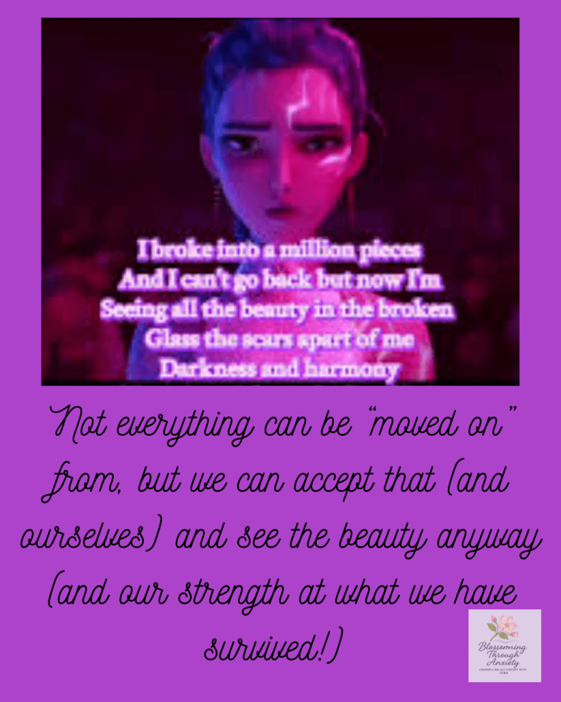 Not everything can be “moved on” from, but we can accept that (and ourselves) and see the beauty anyway (and our strength at what we have survived!)